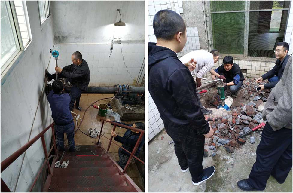 電磁流量計安裝方便,適合多種工況,可實現(xiàn)不停水操作,璧山區(qū)九個鎮(zhèn)水廠僅用時一天半時間施工完成,青天特克